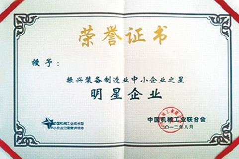 2012年明星企业荣誉证书