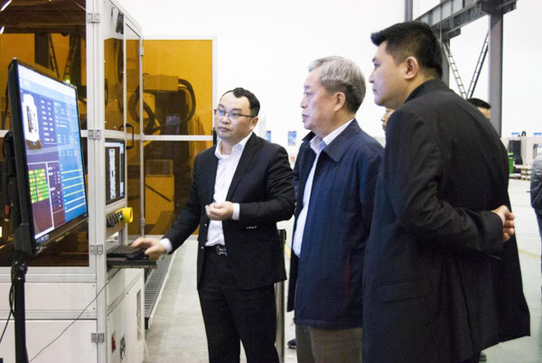 科技部党组成员郭向远仔细询问澳门新莆京在线关节机器人、智能在线检测以及数字化工厂的细节