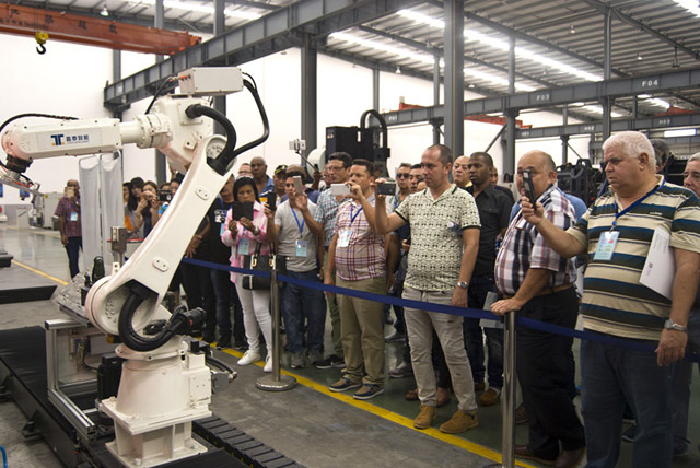 古巴专家团参观“3C产业手机金属外壳加工的自动化生产线”及“数字化工厂”