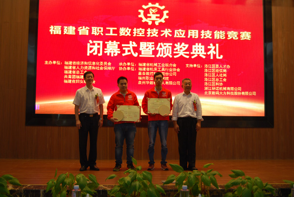 竞赛组委会领导为获奖选手颁发“福建经信系统数控应用技术能手”