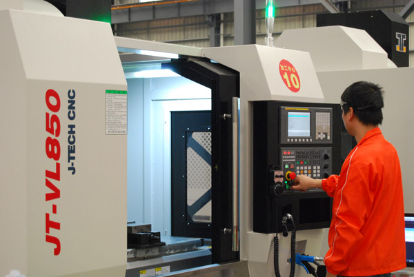 其中新葡京娱乐高速立式加工中心JT-VL850拥有48m/min快速定位,轴最大加速度1.0G,有效缩短加工定位时间,提高加工效率;特别是配置了10000rpm的直结式主轴,确保高速切削的稳定性且无皮带之动力损耗;最高刚性攻丝转速:5000rpm,刚性攻丝倍速回退,有效提高刚性攻丝速度。该加工中心广泛运用于汽车零部件、摩托车/电动车配件等产品的有色金属加工需要,以及模具(如塑料模具、橡胶模具、金属模具等)、五金加工、工程机械、化工机械及配件的加工、铝及铝型材加工、适配器、油泵、摄影器材、其他机械行业零部件的加工主机等(如切割机、造纸机、纺织机、CNC等),确保高速、高精度、高稳定性的加工要求。
